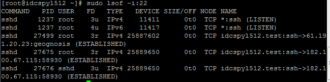 如果提示没有安装lsof这个命令,CentOS可以执行:yum install lsof 安装,Debian可以执行:apt-get install lsof 安装。