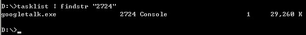 如下图:最后一列为程序PID,再通过tasklist命令:tasklist | findstr “2724”