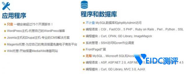 HostGator主机支持Python、PHP、Perl、ASP、.NET等常见功能,用户可以安装自己喜欢的编程语言来建设网站。于此同时,HostGator主机还支持WordPress、Discuz!、Magento等开源程序的一键安装,让建站更加方便。