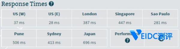 另外一方面,在负载性能测试之后,使用Bitcatcha测试来自不同地理位置的访问速度情况,最快的是美国西海岸地区,访问速度不到1秒钟。一般情况下,平均为2000毫秒或更短的加载时间基本就是比较快的访问速度。