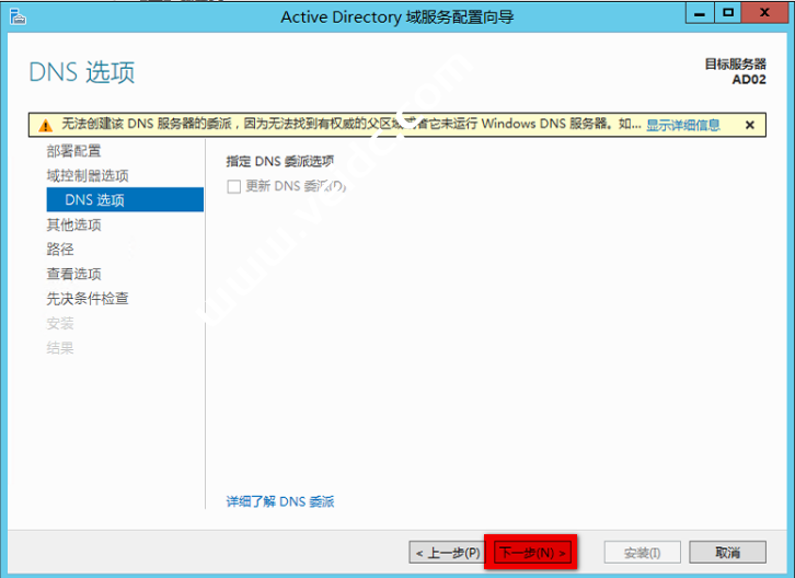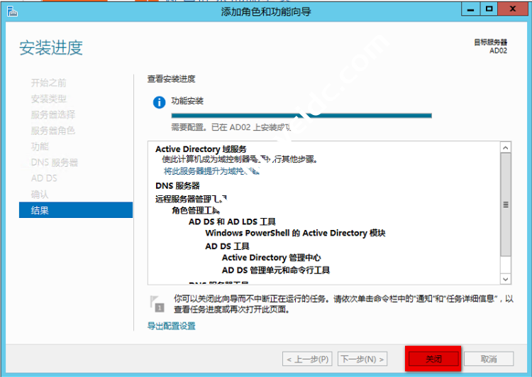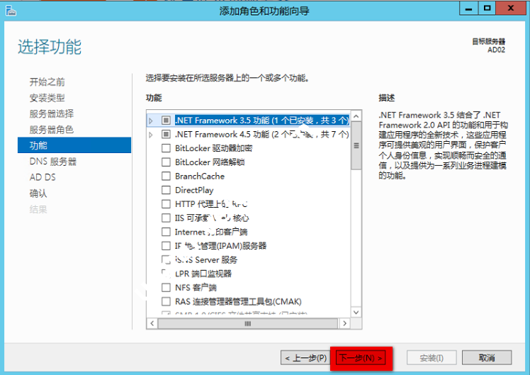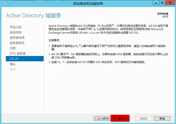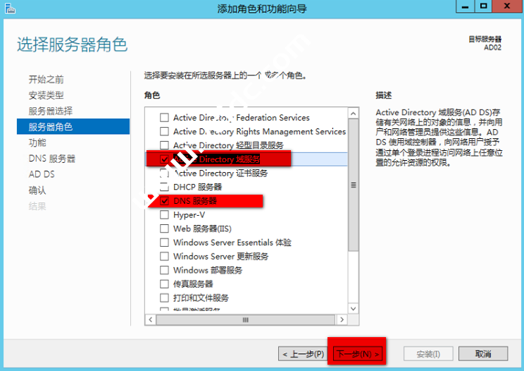 选择”Active Directory域服务“和”DNS 服务“ 然后下一步