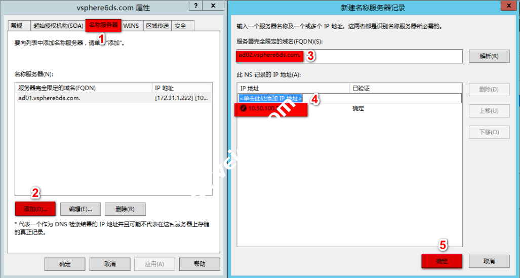 切换到“名称服务器”栏添加域控2节点信息