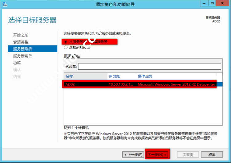勾选”如果需要,自动重启目标服务器“然后选择”安装“