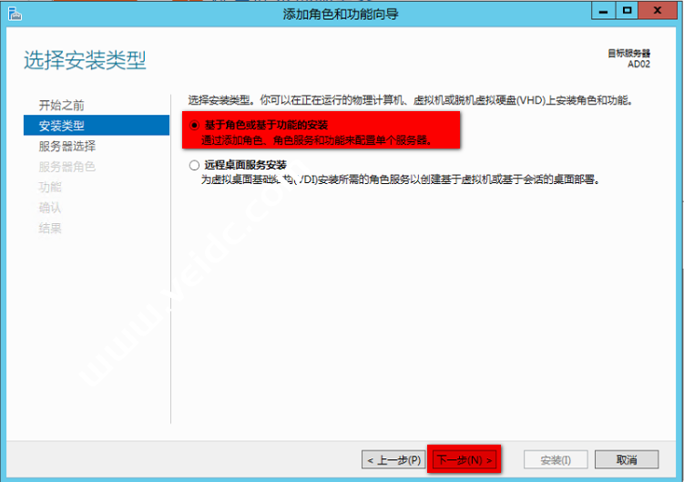 选择”基于角色或基于功能的安装“