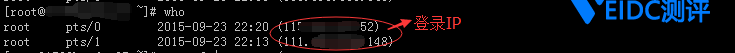 1.如果在服务器上执行 who 查看存在多个终端登录,并且需要结束其他的终端登录。这可以通过登录 IP 判断哪个终端是自己的。