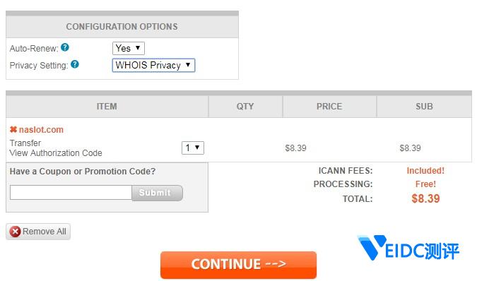 4、支付一年的域名续费金额完成域名转入设置。