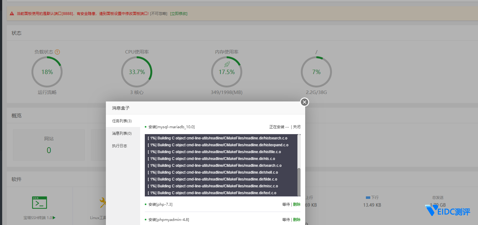 可以看到I/O还是不错的,这对建站安装程序响应会很快,下面我们来安装宝塔面板。