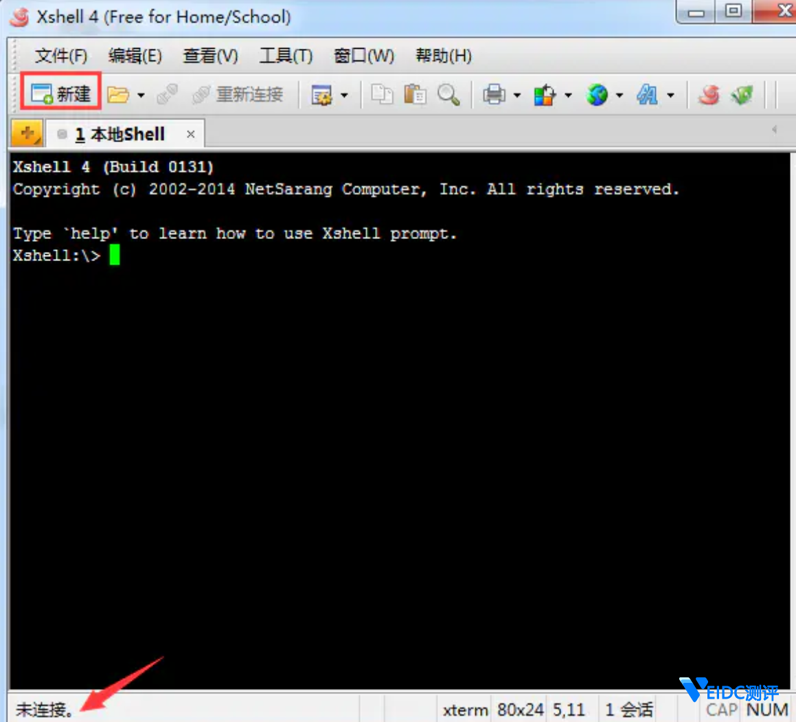 打开 Xshell,出现 Xshell 的界面如下:
