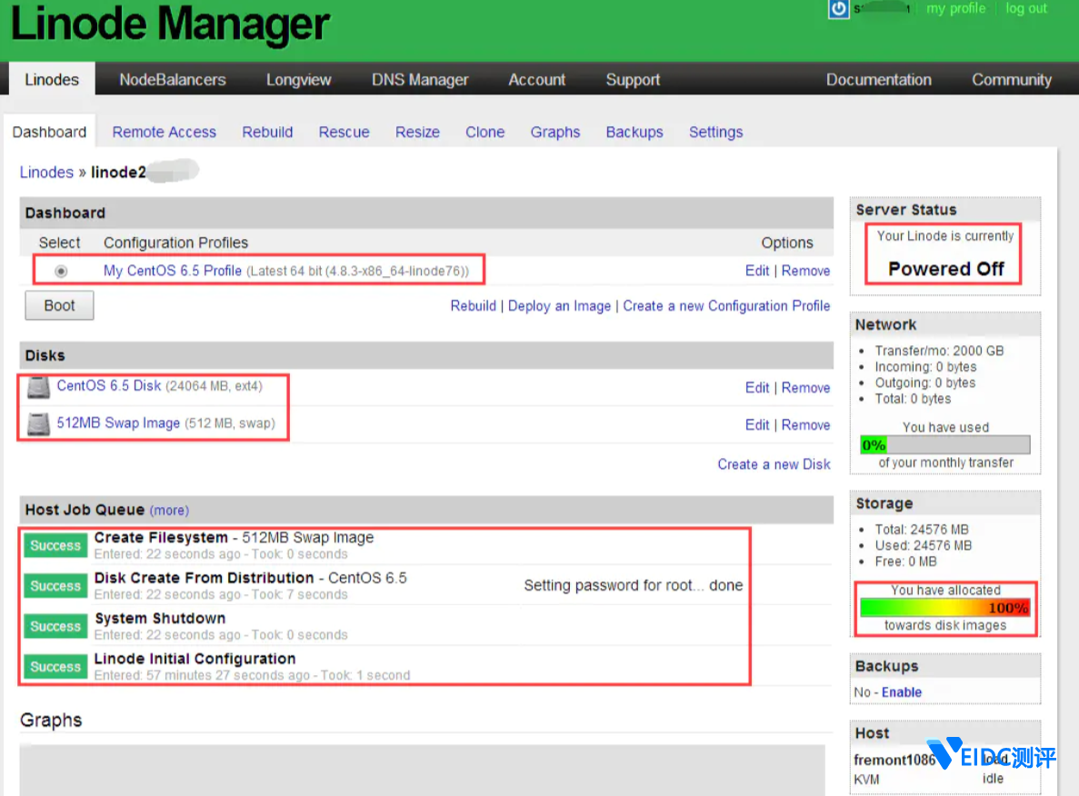 OK,到这里为止,在 Linode 控制台的操作我们已经算告一段落。你可以暂时不用管 Linode 后台了(但是一定要注意记下你注册的 linode 账号信息,以后还是需要登录后台来的)