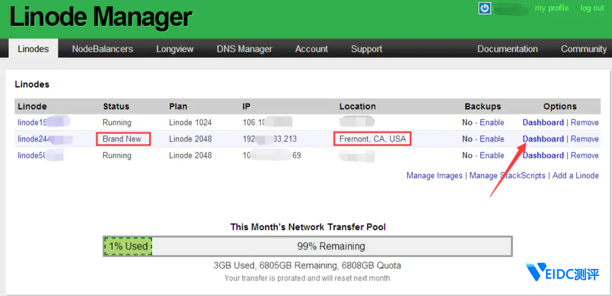 添加过以后,会返回当前的 linode 服务器列表: