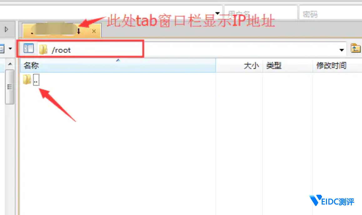 会自动启动连接,到达 VPS 服务器根目录下的 root 目录下。可以看到界面如下,左边是本地的文件,我就不截图了,右边是服务器的文件目录。在路径那里显示为 /root ,有个文件夹带两个省略号的图标。