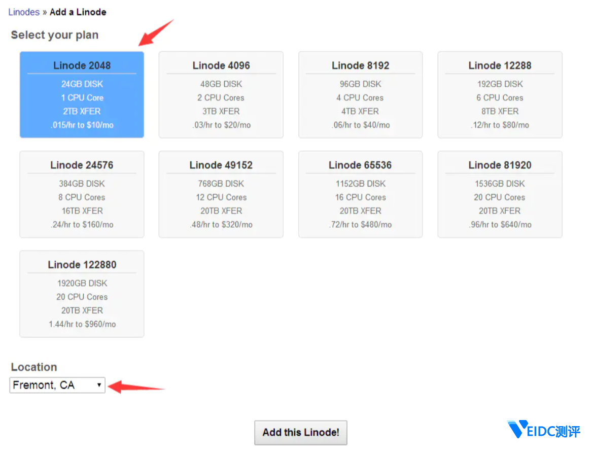 选的 Fremont,CA 机房。