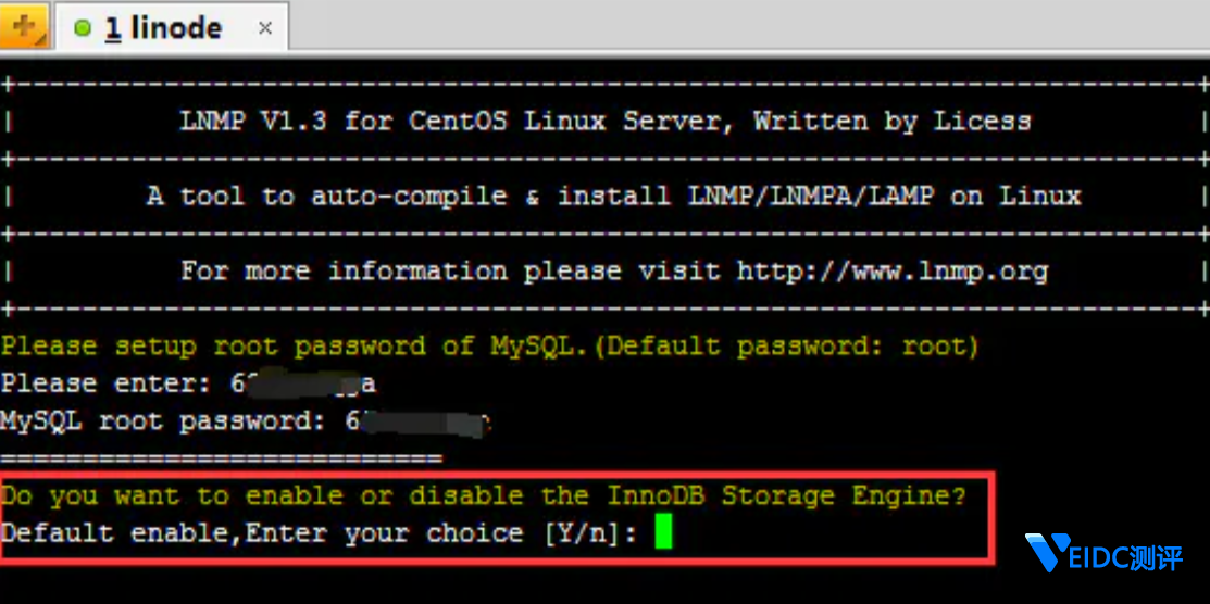 询问是否需要启用MySQL InnoDB,InnoDB引擎默认为开启,一般建议开启,直接回车或输入 y