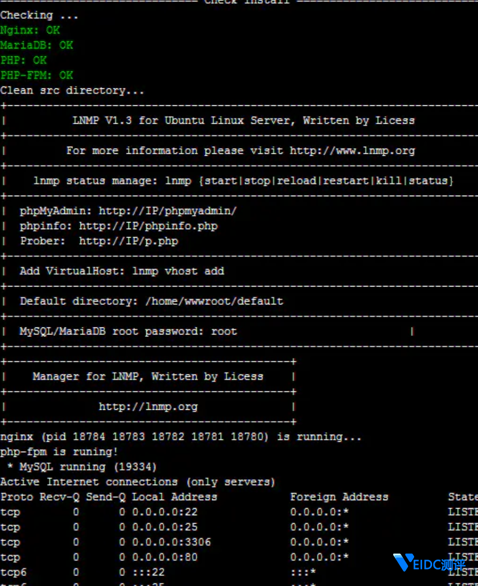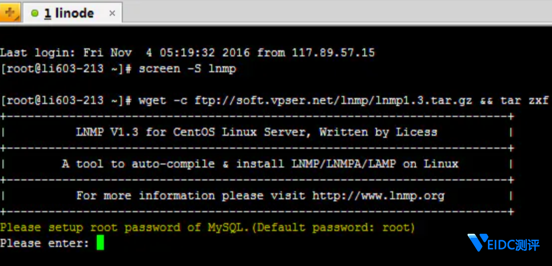 最后的结果是: Install lnmp V1.3 completed! enjoy it.