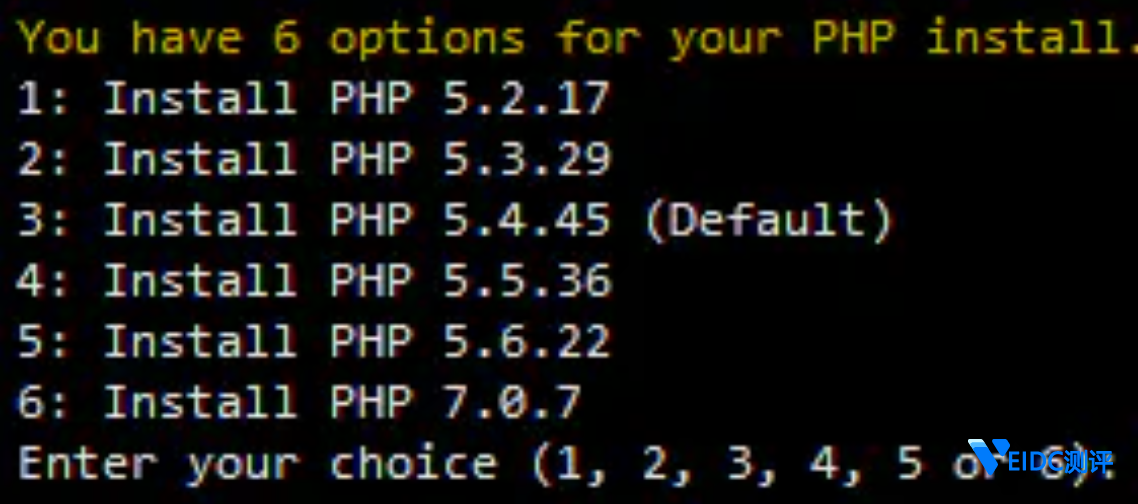 再接来下要选择安装 PHP 的哪个版本。推荐 PHP 7 吧,我也用的是 PHP7,虽然版本比较新,但是经过几次安装测试没有什么问题。输入 6,回车。