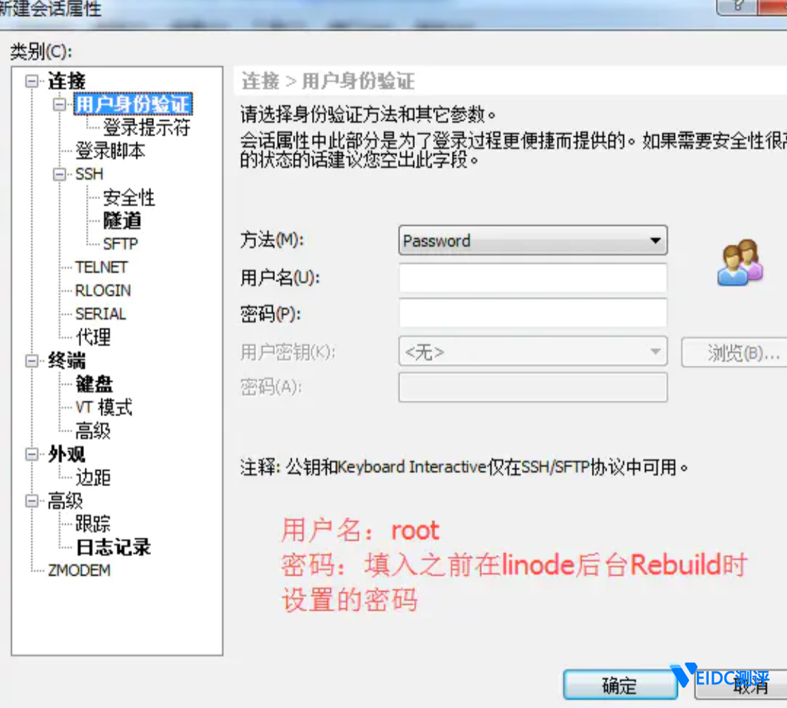 这里设置好后,别急着点确定。点击左边树状菜单里的“用户身份认证”。