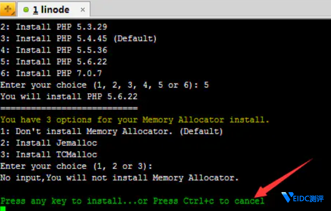 如果你是 Linode 5 美金方案,一定要选择默认的 5.5(输入2),选择不了5.6。