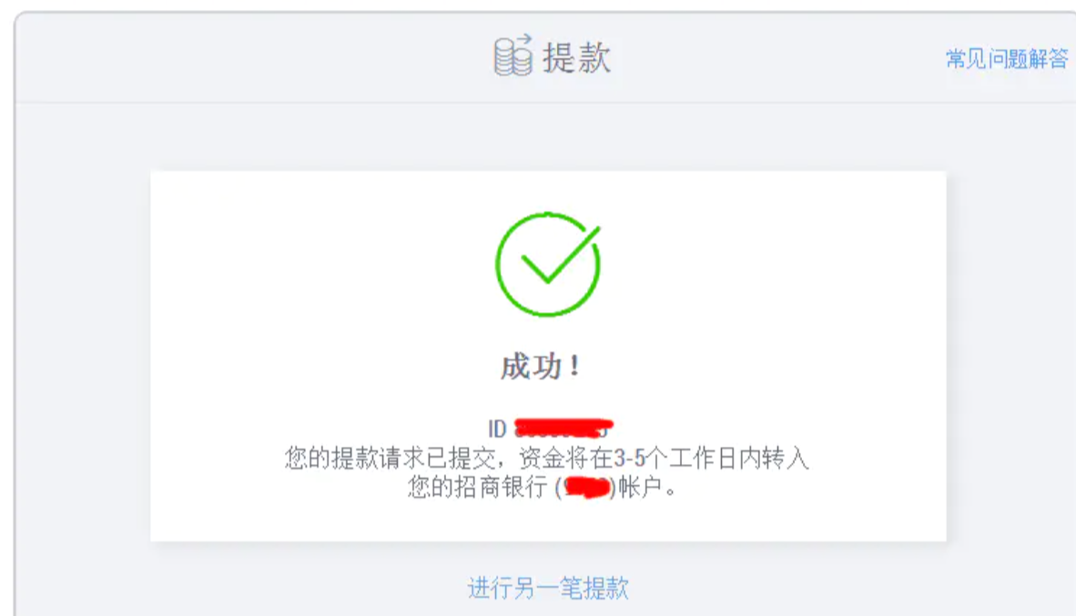 8. 就是这样!完成提款操作之后,您将收到一封确认电子邮件,并且您的资金将在 3-5 个工作日内到达您的账户。(其实速度相当的快,小编用的招行账户,一般都是第2天就到账)