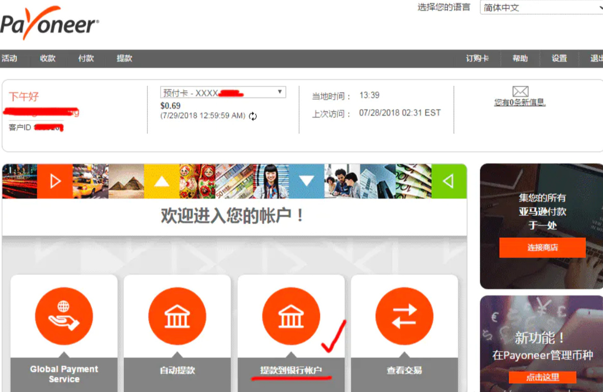 使用Payoneer的“First Century Bank”或“Bank Of America”子账号来收款,然后提现到Payoneer绑定的国内银行卡。这种方式不占用5万美元/年的个人外汇额度,速度还非常快,一般1-2天可以完成到账。