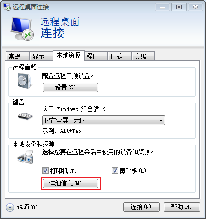 ,展开选项菜单。 - 选择“本地资源”页签,并单击“本地设备和资源”栏的“详细信息”。