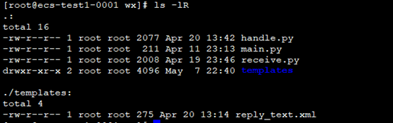 # -*- coding: utf-8 -*- # filename: main.py import web from handle import Handle urls = ( '/wx', 'Handle', ) if __name__ == '__main__': app = web.application(urls, globals()) app.run() - 新建handle.py文件,复制如下代码: