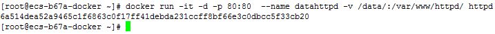 docker run -it -d -p 80:80 --name datahttpd -v /data/:/var/www/httpd/ httpd