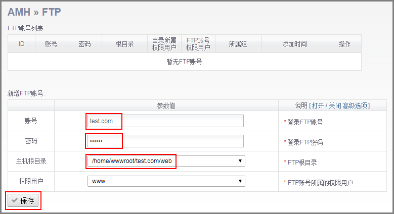 - 选择“FTP”,新增FTP账号。