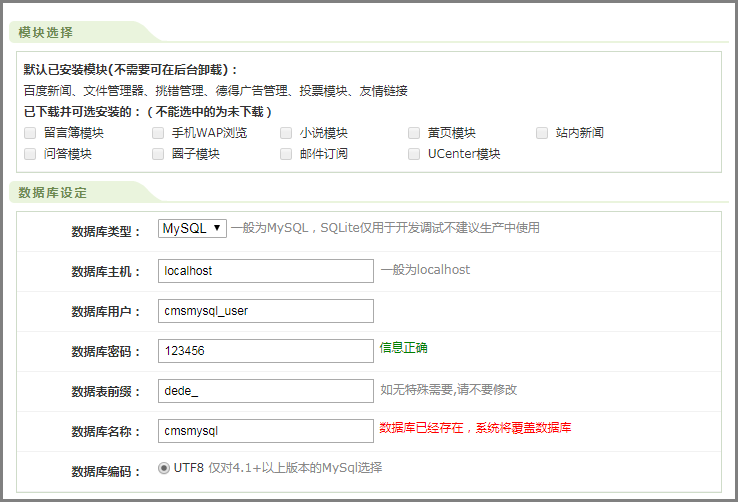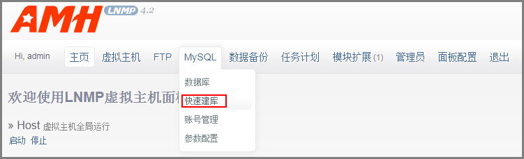 - 选择“MySQL > 快速建库”,创建网站需要的MySQL数据库。