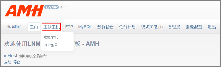 - 单击导航栏中的“虚拟主机”。