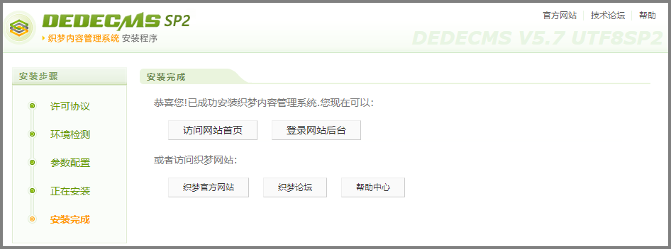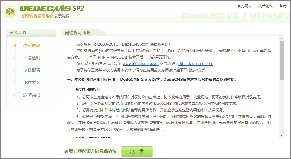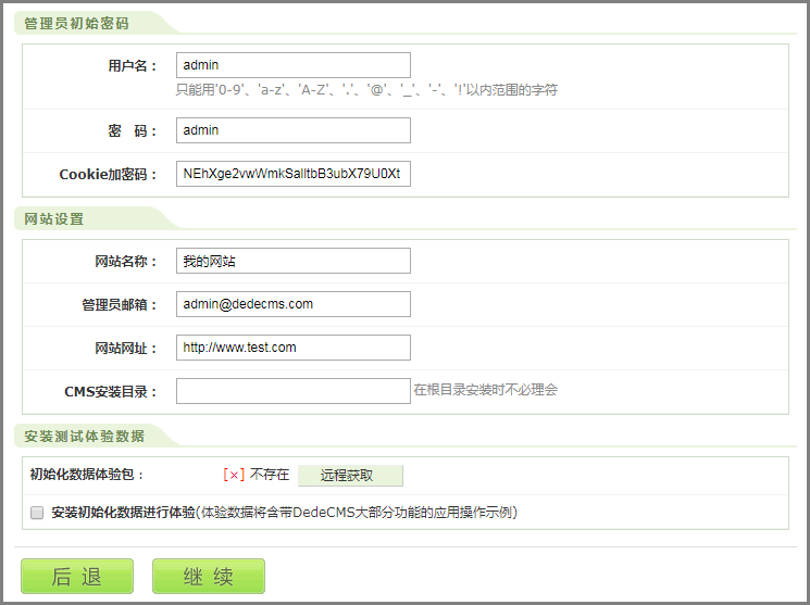 - 通过浏览器访问步骤4绑定的域名“www.test.com”,安装DEDECMS系统。