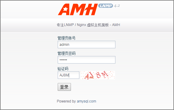 - 通过浏览器访问“http://服务器公网IP地址:8888”,进入AMH后台登录界面。