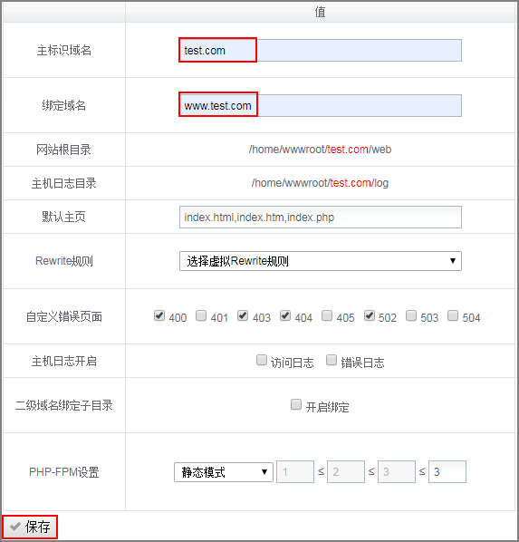 - 设置主标识域名和绑定域名,单击“保存”。