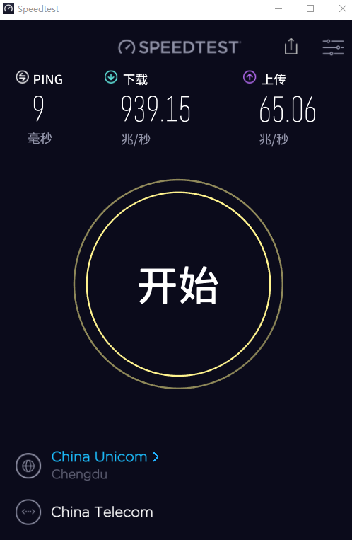 打开之后会自动进行测速,建议我们多测几次。测速结果如下: