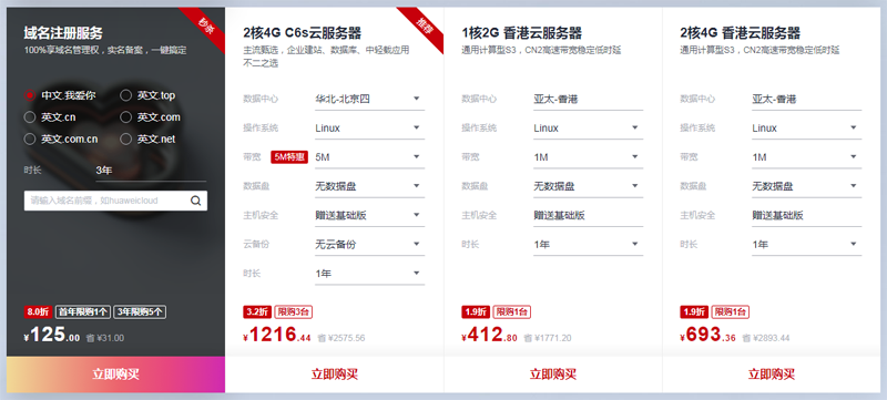 华为云是华为公司旗下云计算服务品牌,华为云相比其他商家有个特色是促销方案可以根据自身需要选购数据盘,产品稳定靠谱,大企业安全放心。他们家的云服务器产品适合是个人建站、企业用途及其他一些商业化项目。