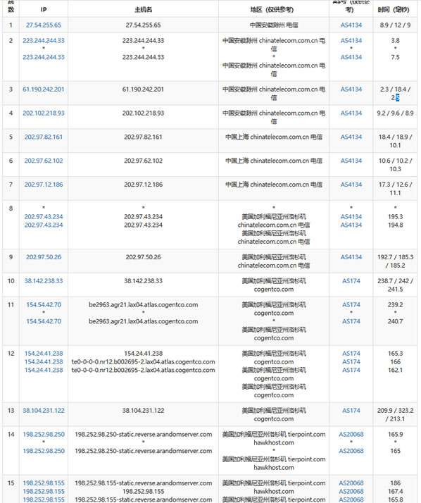 | 全网 | 美国洛杉矶(智博网络) 0.5ms/辽宁沈阳(移动) 1789.3ms | 192.1ms |