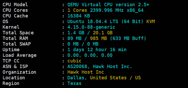 HawkHost老鹰主机云服务器采用的是SSD固态硬盘,读写速度还是比较好的,但是由于线路问题,在国内中文业务中个人建议不要使用,速度比较一般。如果我们中文业务需要服务器,建议使用香港、日本服务器,对于老鹰主机云服务器可以用于外贸业务。