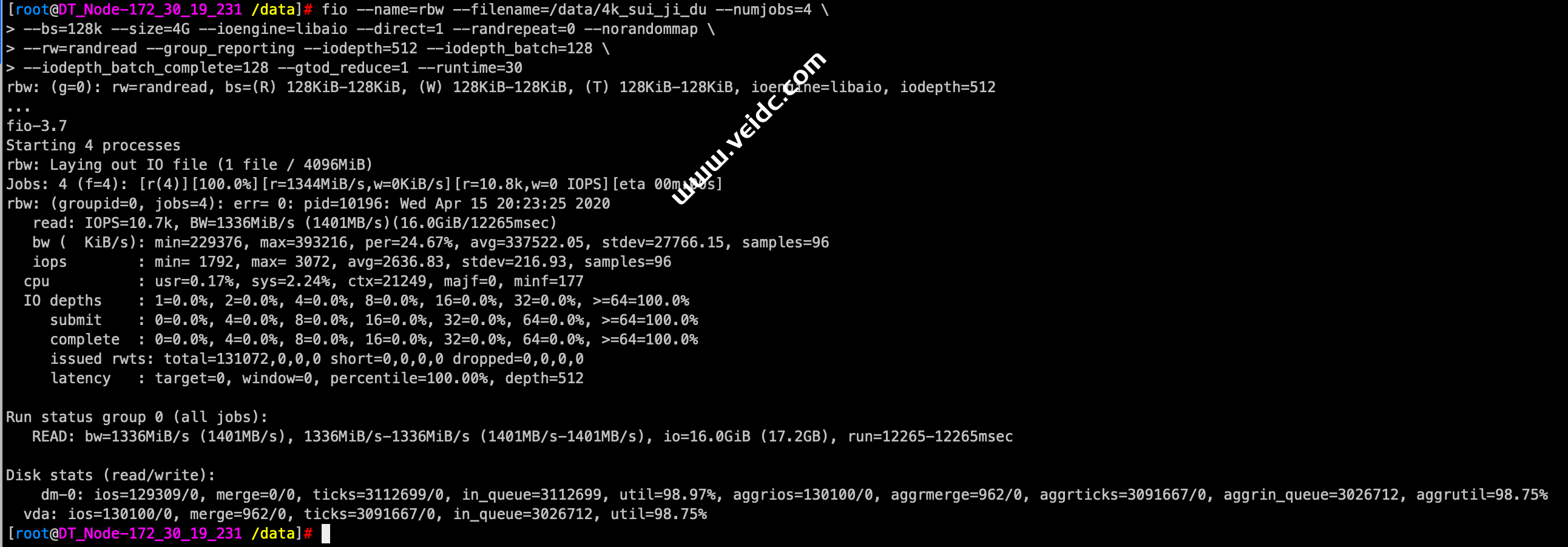 [root@DT_Node-172_30_19_231 /data]# fio --name=wbw --filename=/data/sui_ji_xie --numjobs=4 \