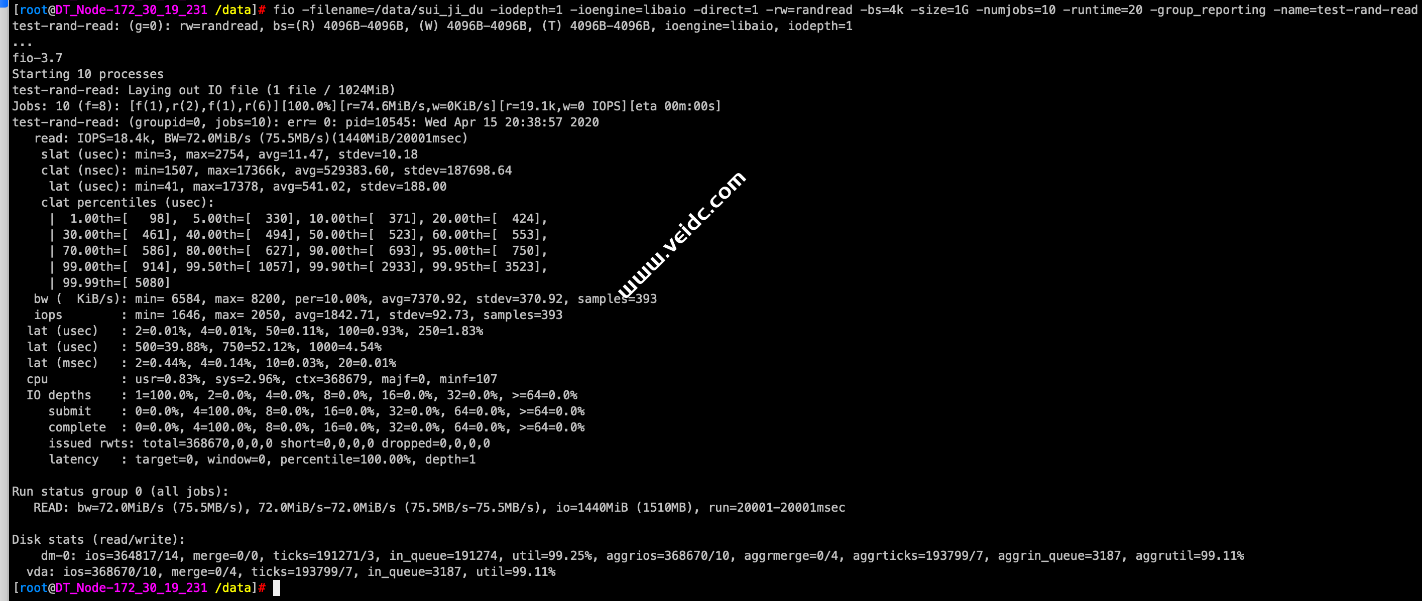 vda: ios=368670/10, merge=0/4, ticks=193799/7, in_queue=3187, util=99.11%