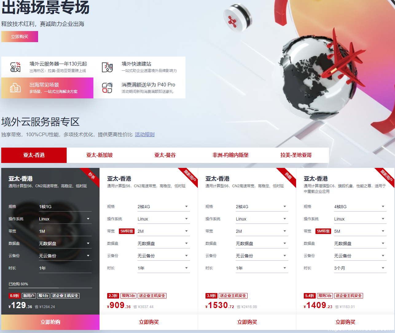 华为云是国际电信巨头华为公司旗下的云计算服务品牌,云产品自然靠谱,适合个人、企业各种商业化用途,同时云服务器也适合稳定建站等操作!近日,华为云放出了大招,本文重点介绍“出海场景专场”活动。据了解这次活动有1核1G香港云服务器129元/年、送企业主机安全等,下面我们来看下具体优惠活动。