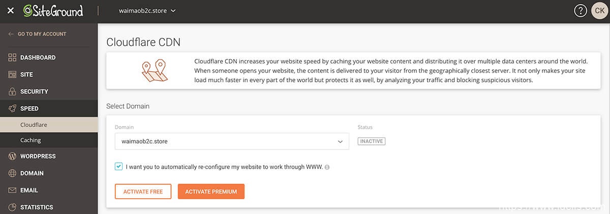 SiteGround主机将Cloudflare CDN加速服务集成到了自己的主机控制面板中,因此我们可以直接在SiteGround后台为我们托管在SiteGround上的WooCommerce网站申请免费的CDN加速服务,来提高我们网站的打开速度。