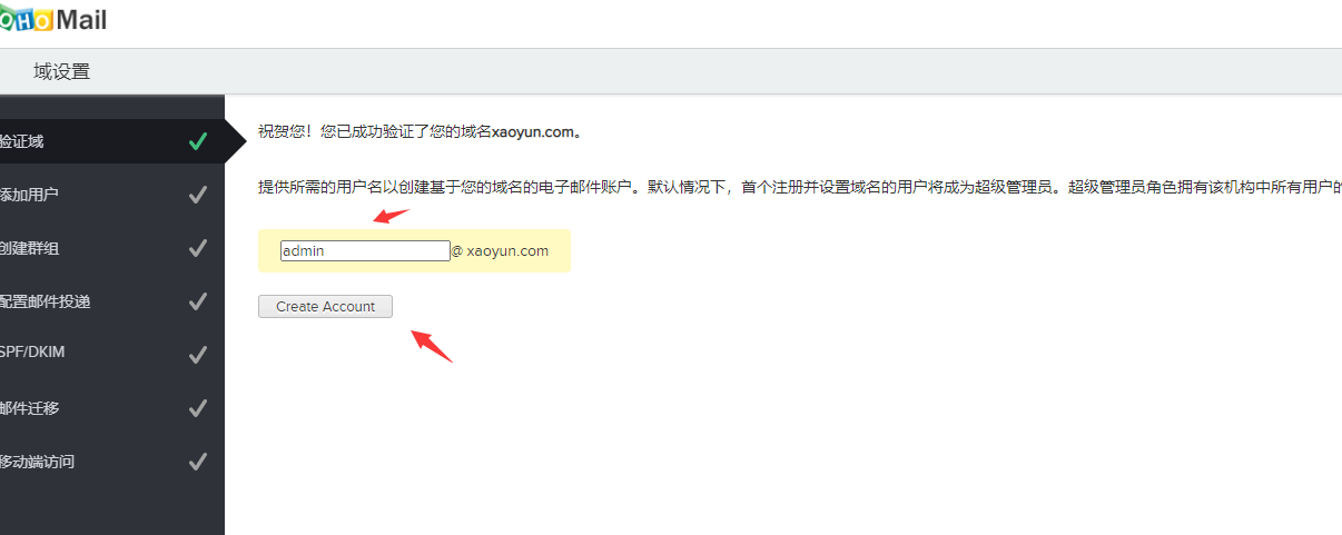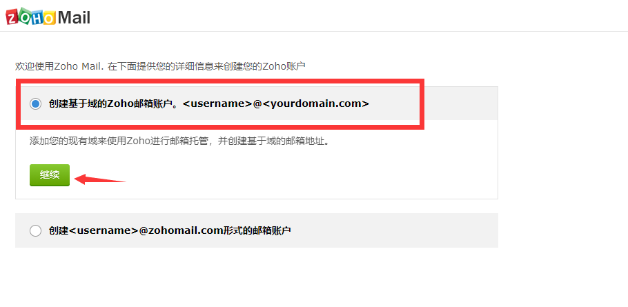 进行到这一步,我们就可以访问https://mail.zoho.com