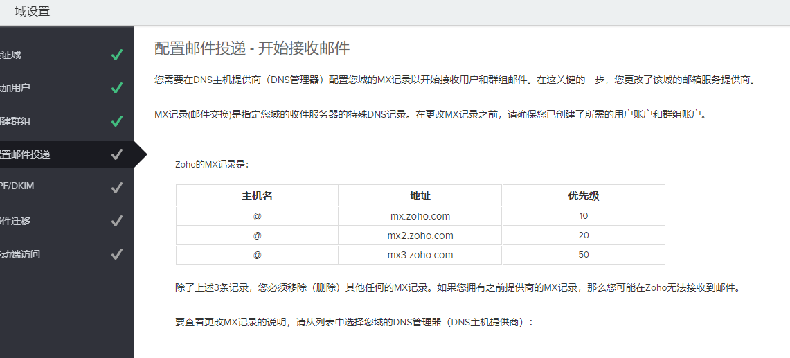 然后配置邮件MX记录,如果不配置是无法成功的。