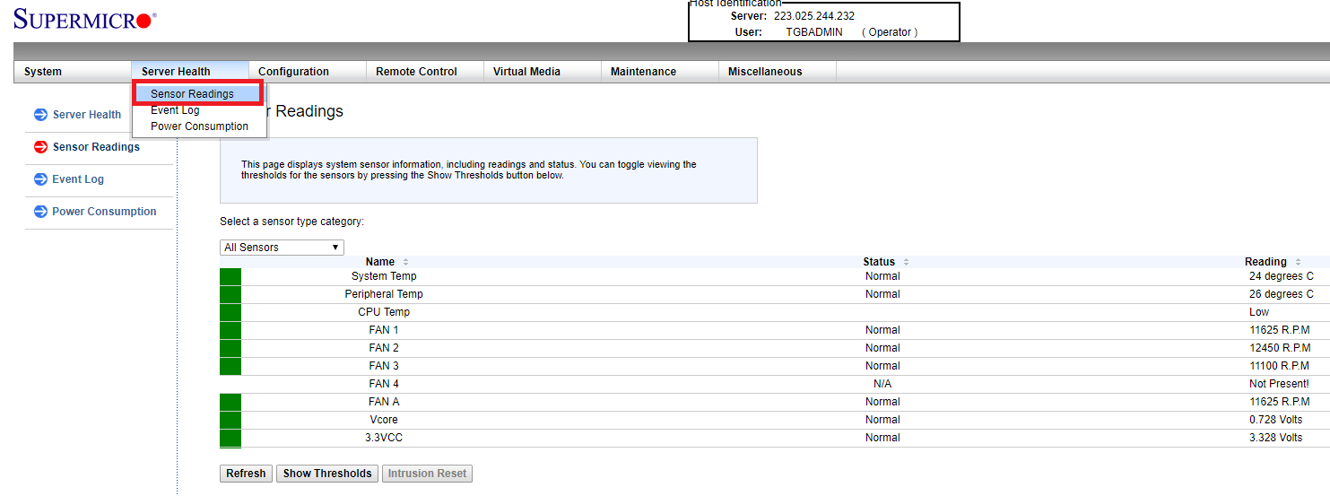 3.单击服务器运行状况 → 传感器读数。