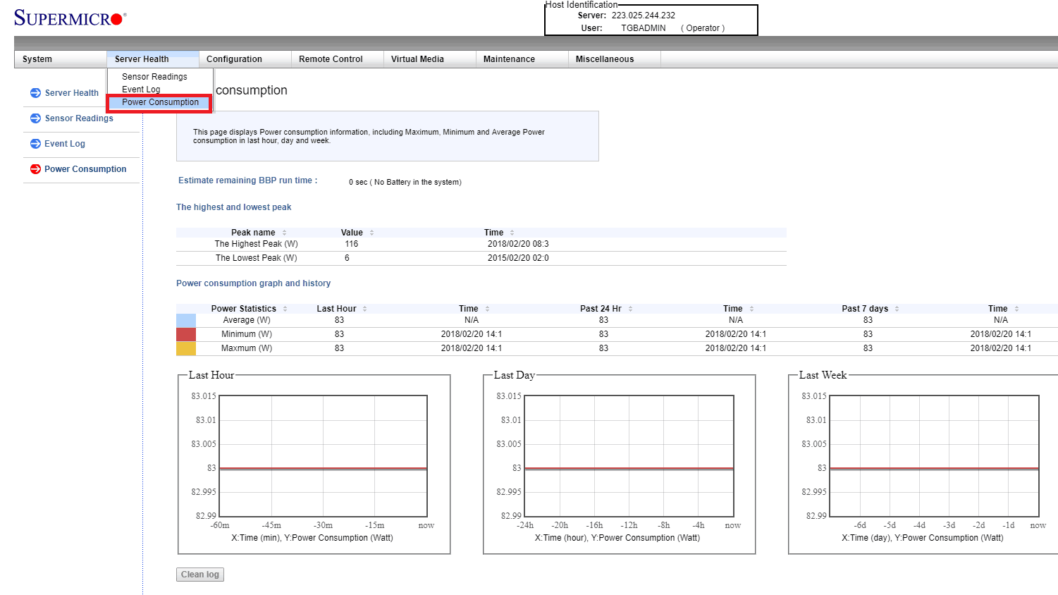 4.单击服务器运行状况 → 功耗以查看屏蔽