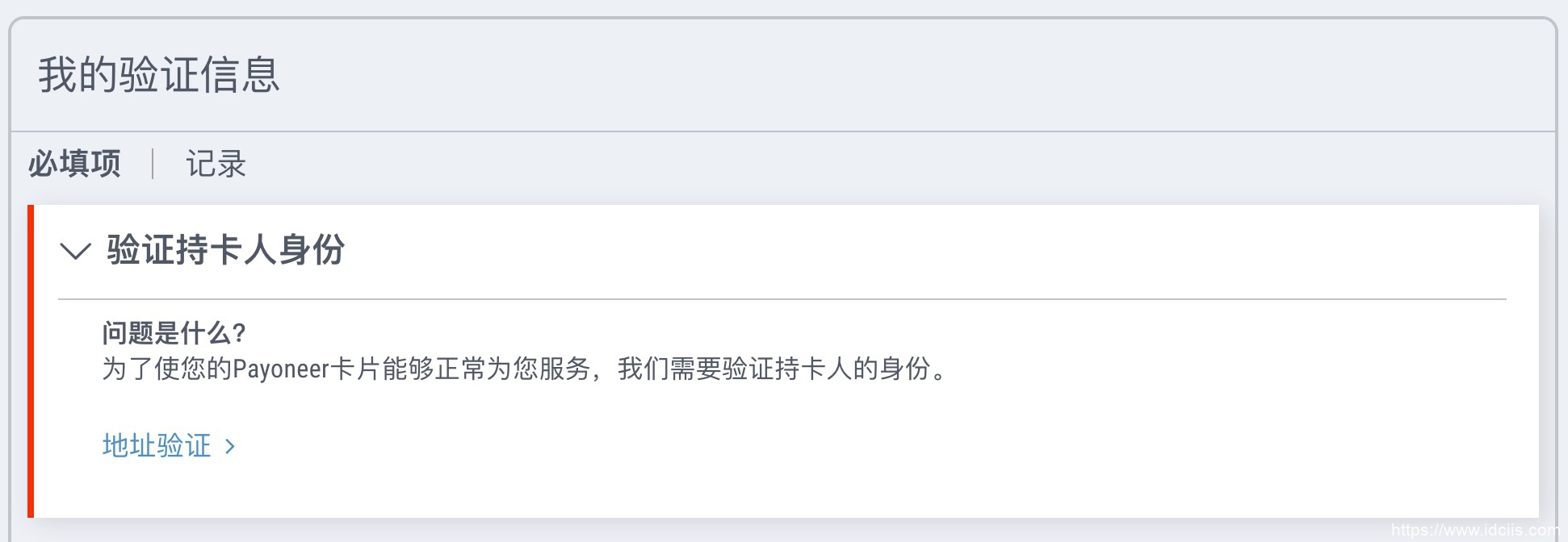 提交地址证明验证Payoneer实体卡