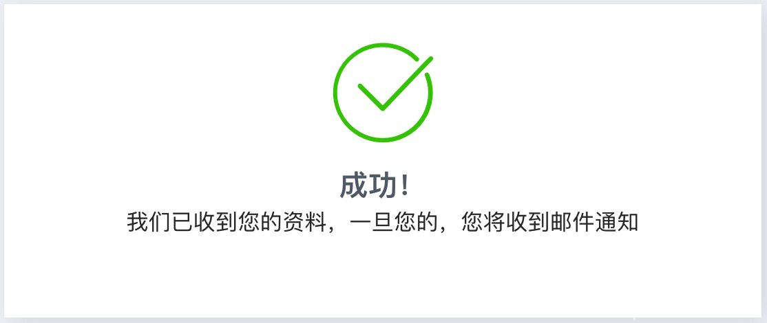 提交之后,系统会提示你资料提交成功,静候下一步的邮件通知即可。