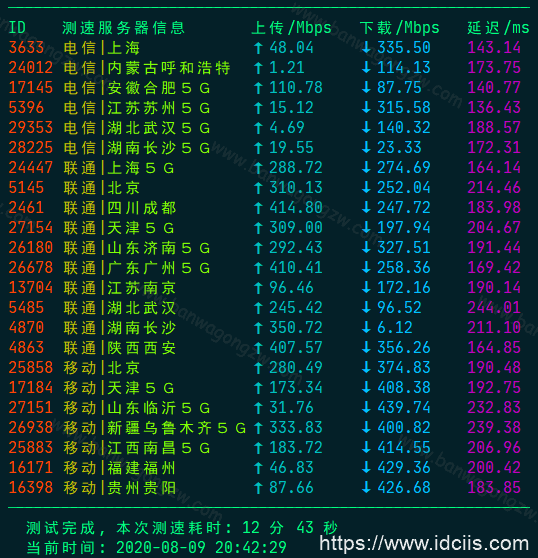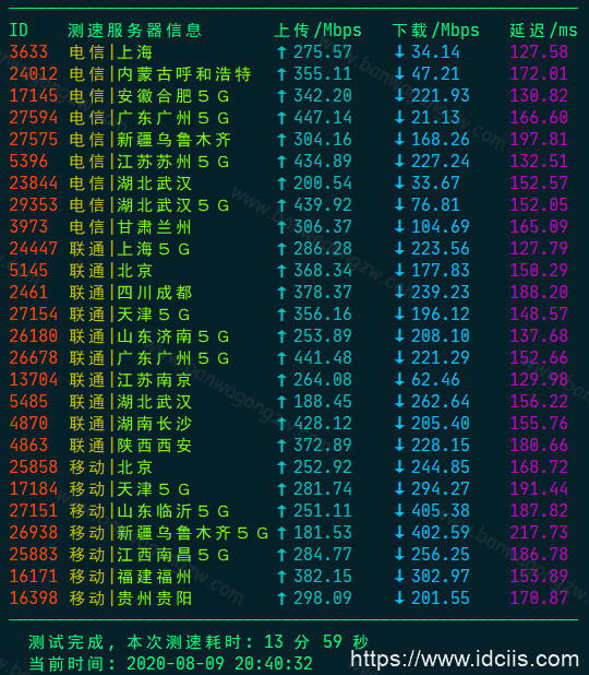 另外这里还需要提醒大家的是:通过speedtest进行国内节点测速时,我们需要关注的是上传速度,上传速度是指的VPS向我们本地发送数据的速度,这个值比下载速度重要。