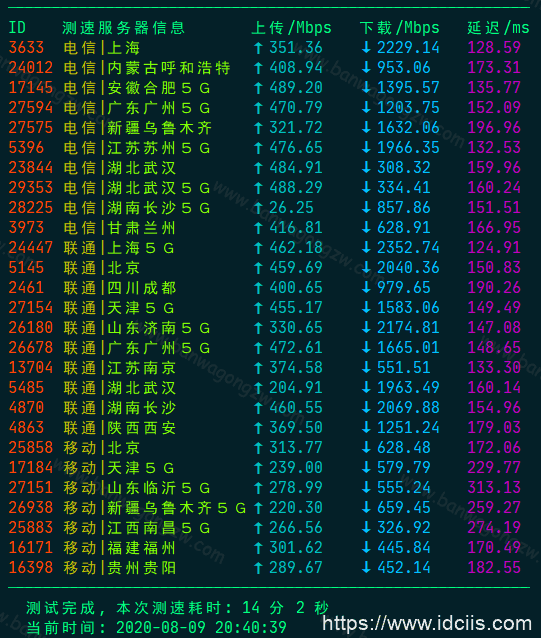 2. 搬瓦工DC9 CN2 GIA机房晚高峰速度测试结果