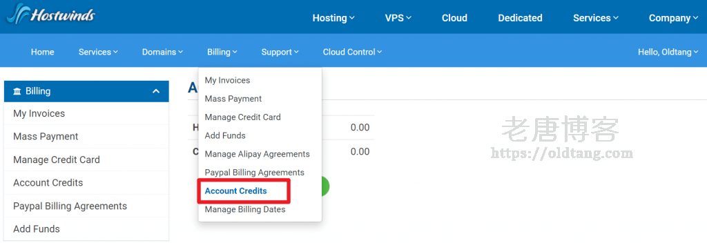 Hostwinds 查看账户余额