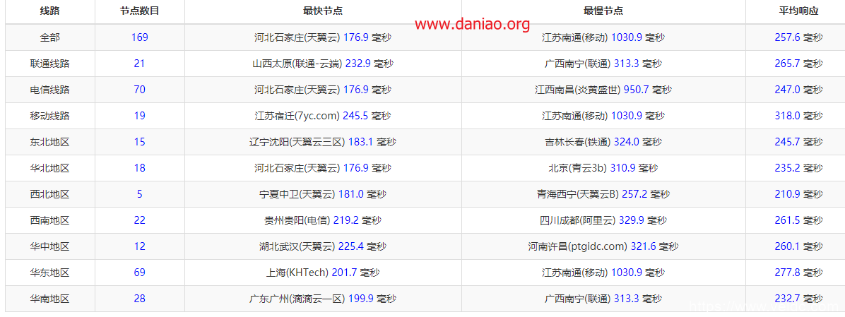 ID 测速服务器信息 上传/Mbps 下载/Mbps 延迟/ms 3633 电信|上海 ↑ 1.54 ↓ 206.35 214.92 24012 电信|内蒙古呼和浩特 ↑ 5.30 ↓ 178.50 232.30 17145 电信|安徽合肥5G ↑ 12.79 ↓ 200.25 252.12 27594 电信|广东广州5G ↑ 1.61 ↓ 133.31 197.31 5396 电信|江苏苏州5G ↑ 135.21 ↓ 203.83 208.48 23844 电信|湖北武汉 ↑ 75.40 ↓ 182.24 238.10 29353 电信|湖北武汉5G ↑ 3.03 ↓ 193.73 223.14 28225 电信|湖南长沙5G ↑ 79.46 ↓ 87.58 242.29 3973 电信|甘肃兰州 ↑ 1.53 ↓ 151.30 259.91 24447 联通|上海5G ↑ 145.98 ↓ 198.25 315.55 5145 联通|北京 ↑ 173.15 ↓ 122.45 257.20 2461 联通|四川成都 ↑ 170.48 ↓ 63.06 266.45 27154 联通|天津5G ↑ 24.40 ↓ 14.09 261.29 26180 联通|山东济南5G ↑ 165.84 ↓ 110.98 253.94 13704 联通|江苏南京 ↑ 15.66 ↓ 7.65 298.96 5485 联通|湖北武汉 ↑ 20.10 ↓ 51.76 258.13 4870 联通|湖南长沙 ↑ 171.17 ↓ 201.70 244.72 4863 联通|陕西西安 ↑ 21.86 ↓ 13.04 245.46 30232 移动|内蒙呼和浩特5G↑ 174.46 ↓ 201.40 309.33 25858 移动|北京 ↑ 134.74 ↓ 202.84 240.55 17184 移动|天津5G ↑ 56.26 ↓ 193.98 303.64 27151 移动|山东临沂5G ↑ 137.94 ↓ 194.68 288.97 26938 移动|新疆乌鲁木齐5G↑ 158.15 ↓ 205.32 278.62 16171 移动|福建福州 ↑ 76.48 ↓ 195.68 259.59 16398 移动|贵州贵阳 ↑ 166.50 ↓ 205.07 280.55